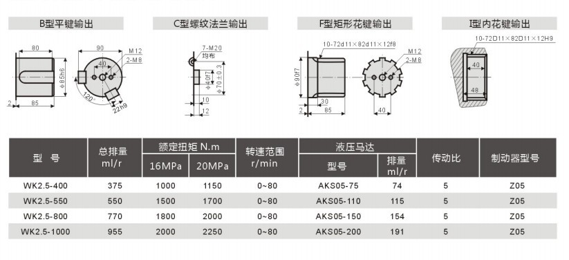 WK2.5液壓傳動裝置輸出軸形式